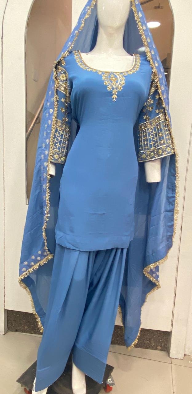 Silk Crape Fabric Powder Blue Colour Customize Farsi Salwar Suit