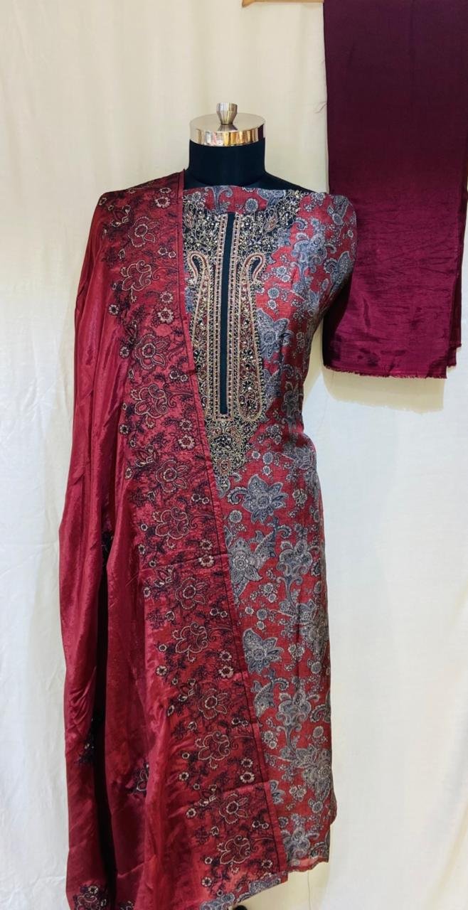 Silk Fabric Copper Colour Printed Casual Wear Suit