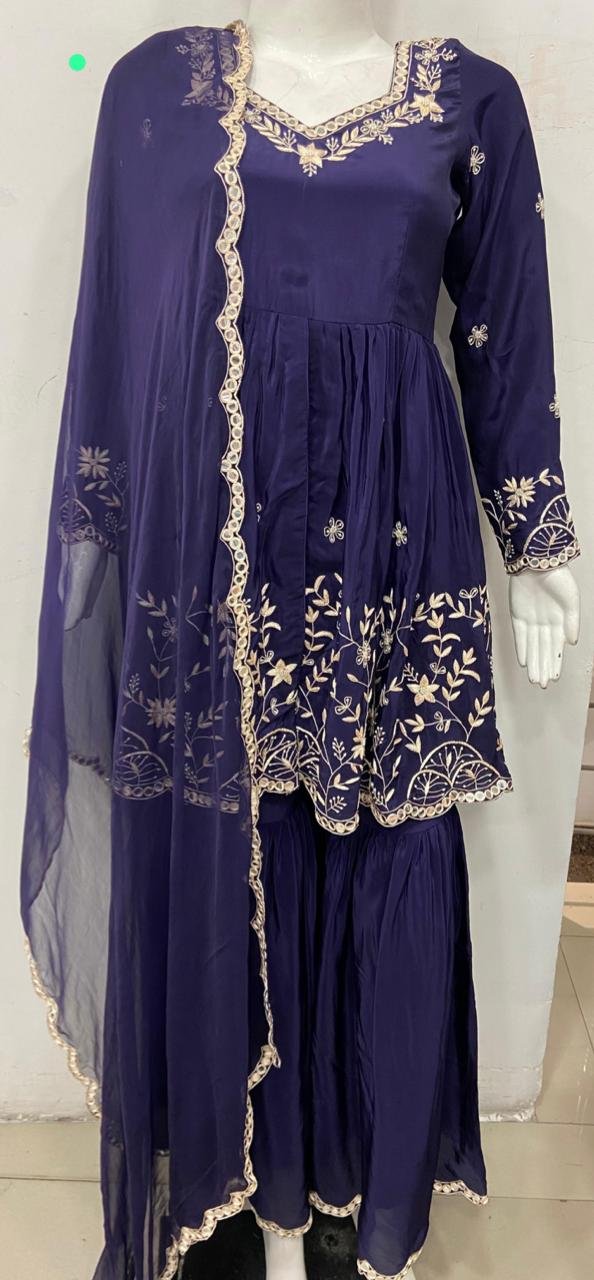 Silk Fabric Thread Work Navy Blue Colour Customize Sharara Suit