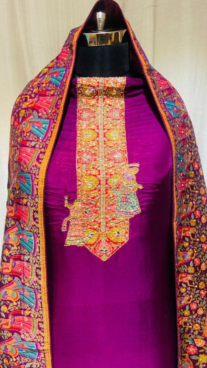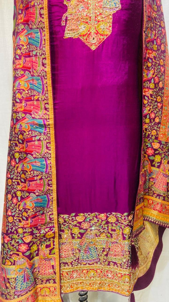 Silk Fabric Wine Colour Attractive Designer Party wear Suit