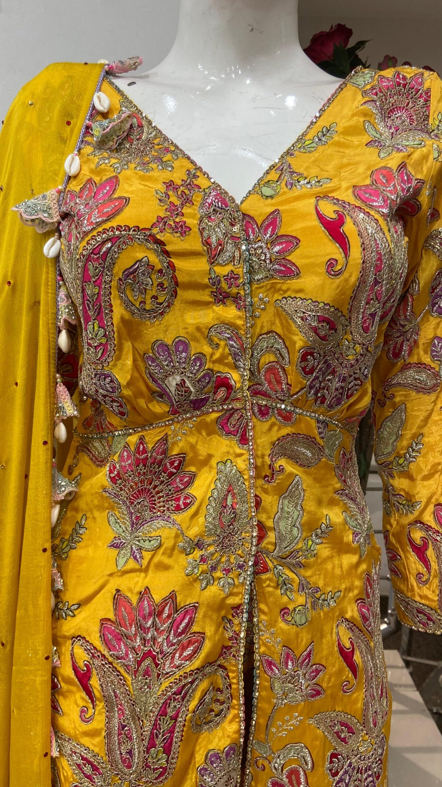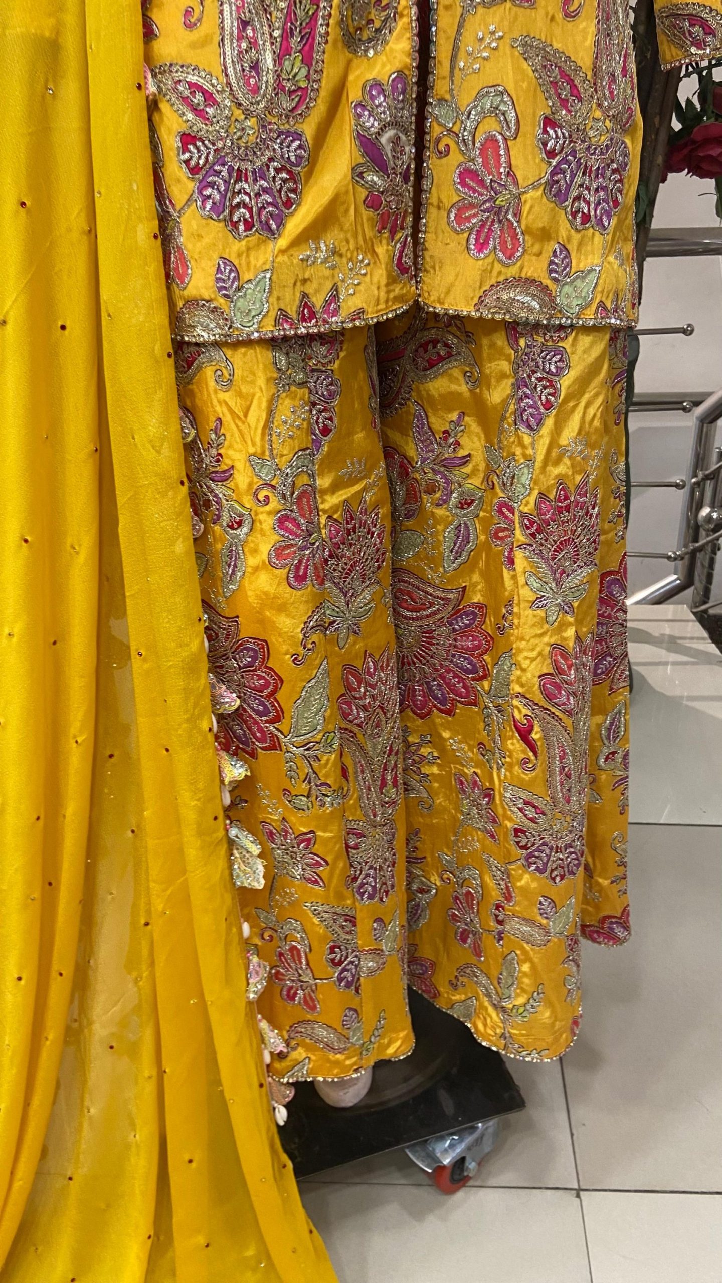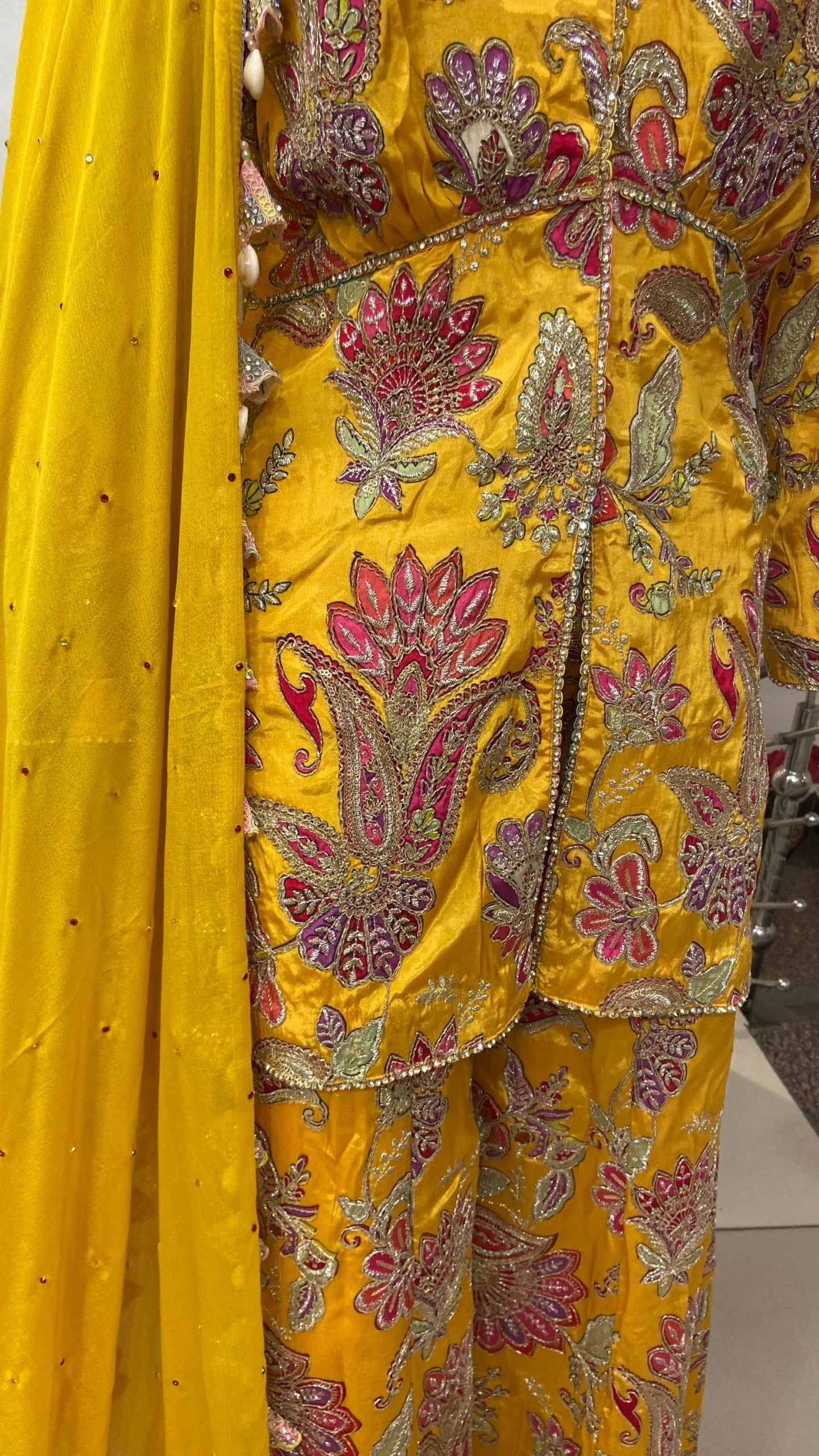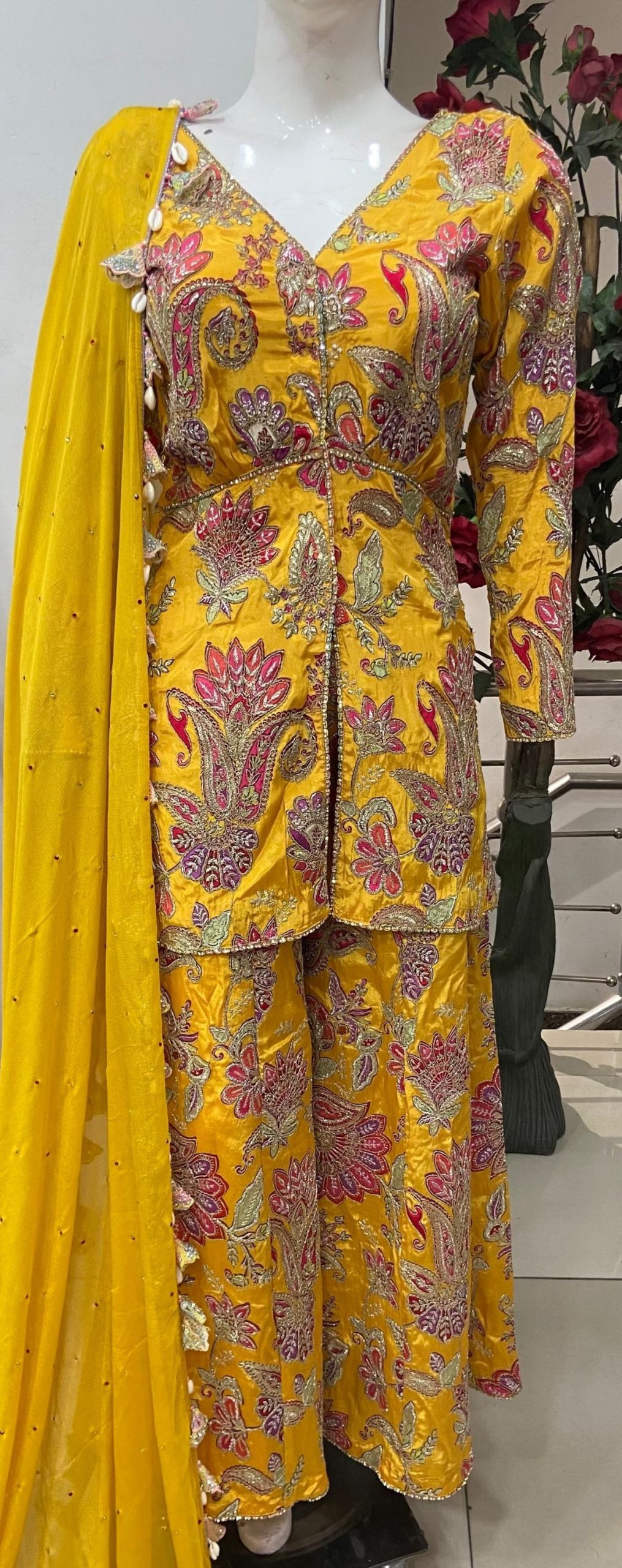 Silk Fabric Yellow Colour Attractive Customized Party wear Plazzo Suit