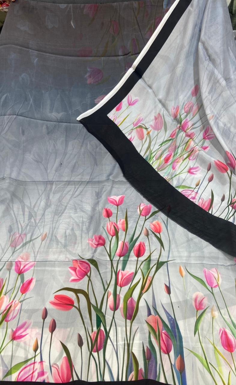 Soft Crape Printed Grey Colour Casual Wear Suit