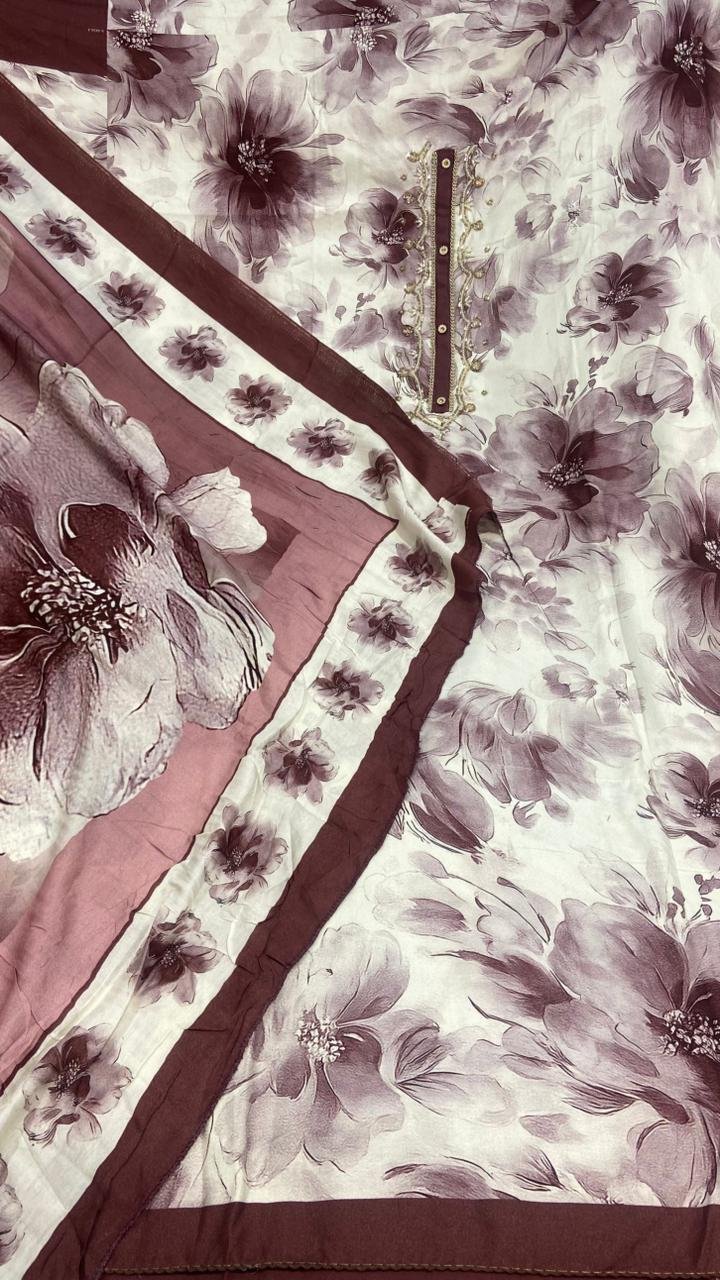 Soft Woolen Fabric Printed Wine Colour Casual Wear Suit