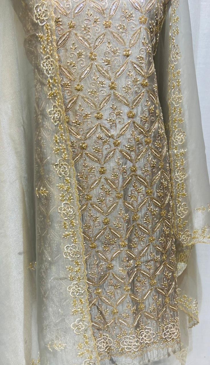 Tissue Shimmer Fabric Grey Colour Attractive Party Wear Suit