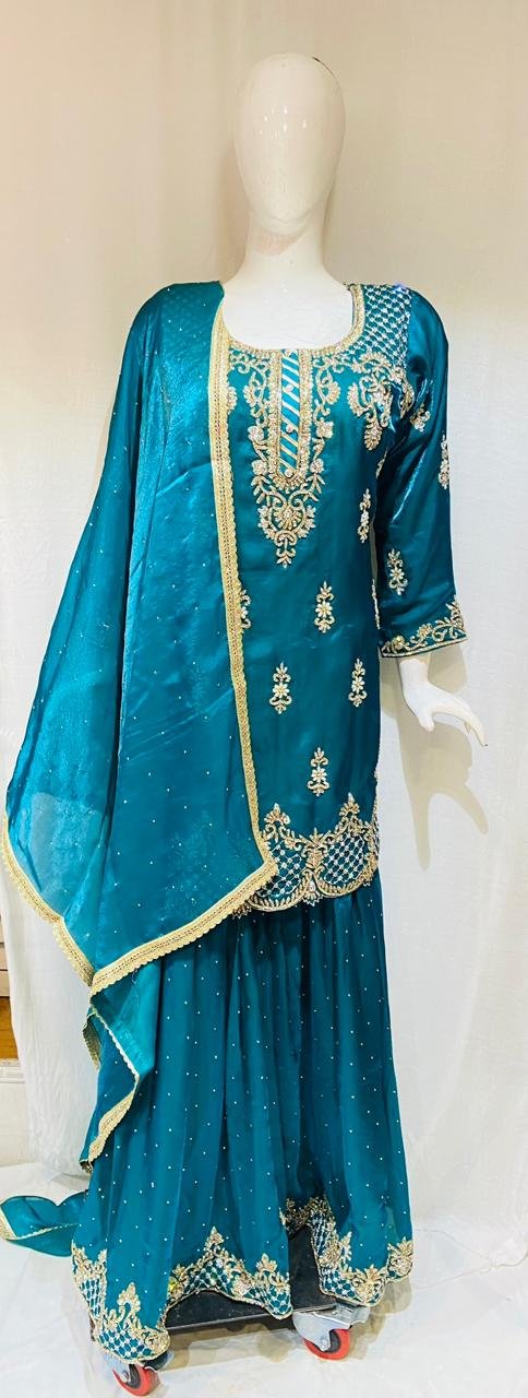 Tissue Shimmer Morpankhiya Readymade Handwork Sharara Suit
