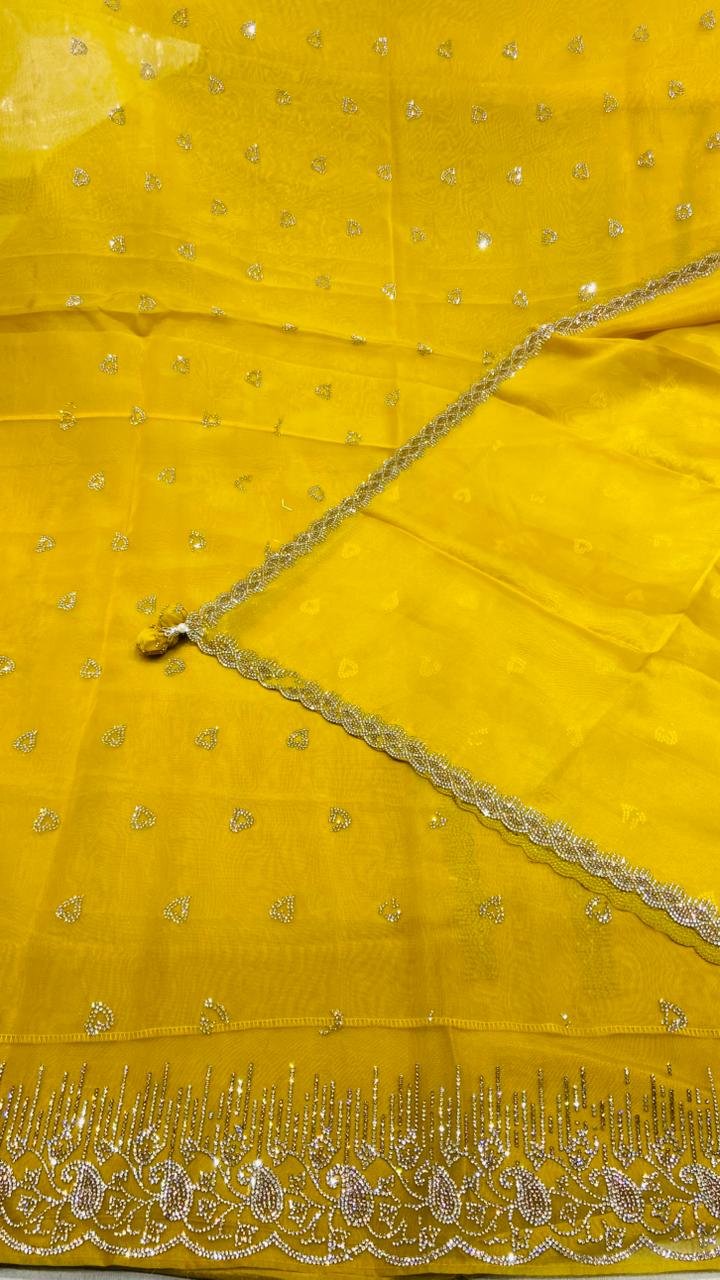 Unstitched Suit, Mustard colour, Tissue fabric