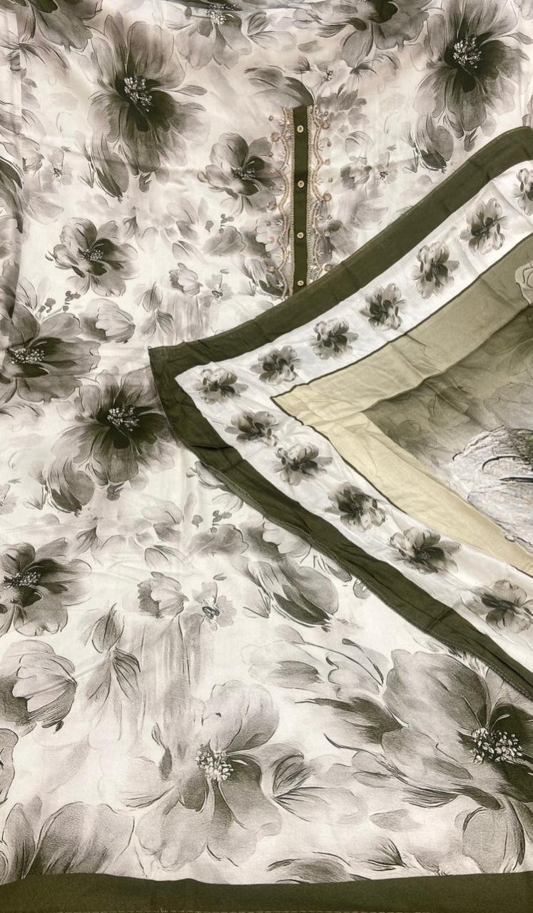 Woolen Fabric Printed Mehandi Offwhite Designer Suit