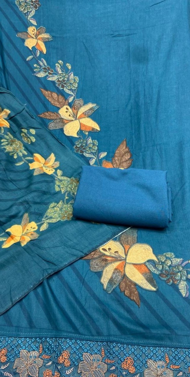 Woolen Fabric Printed Peacock Colour Casual Wear Suit